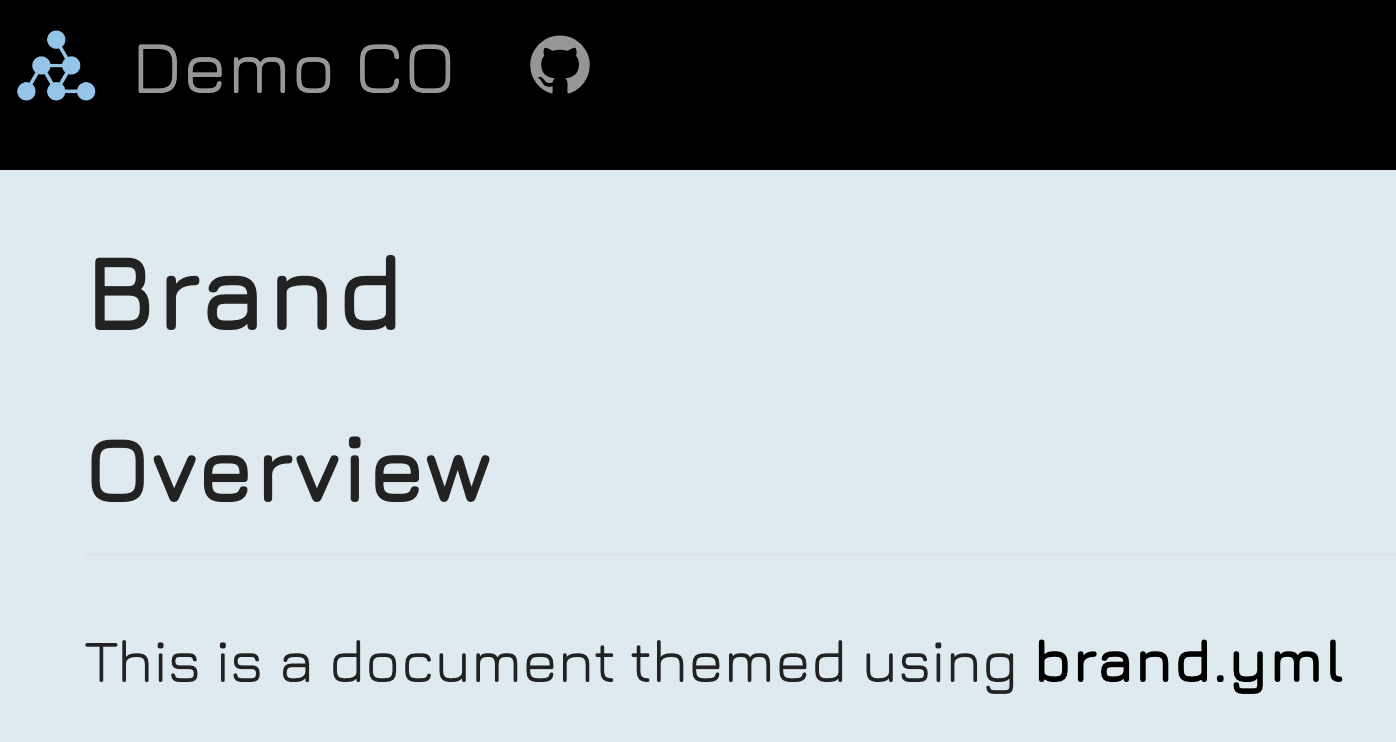 Quarto는 여러 포맷의 문서 외관을 통일할 수 있는 단일 YAML 파일 brand.yml을 지원합니다. 다양한 포맷에서 일관된 스타일이 필요한 조직에 특히 유용합니다.