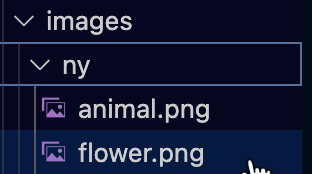 프로젝트를 렌더링하면 해당 이미지 경로는 /images/ny/flower.png처럼 자동으로 변환되어 ny 디렉터리의 이미지가 표시됩니다: