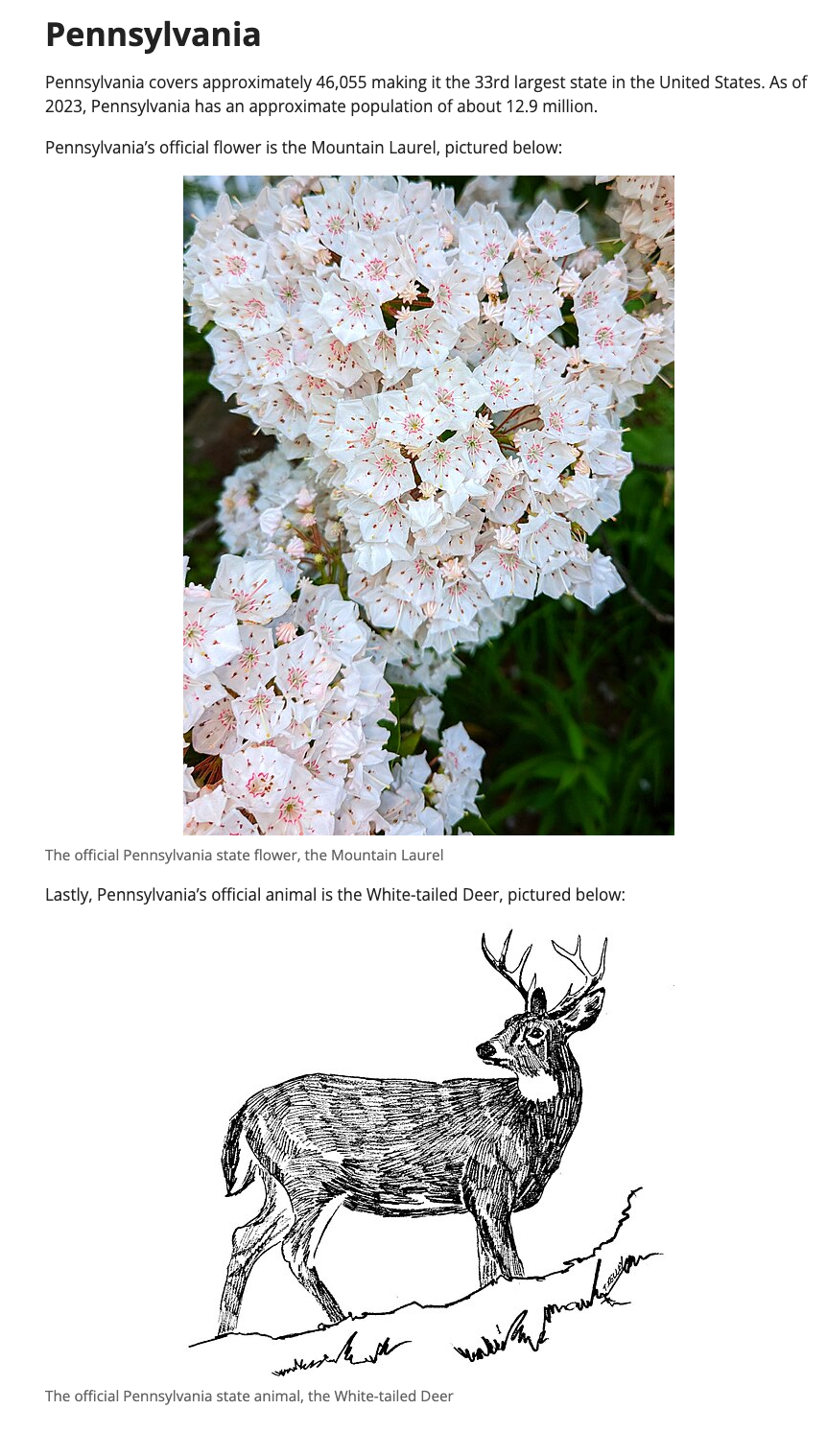 In this document, we cover facts that are unique to the state, like the state's population, its flower, and animal.이 콘텐츠는 각 주의 소개에 공통적으로 쓸 수 있지만, 각 주 고유의 정보를 담고 있지 않으므로, 각 파일에 Include를 삽입한 뒤 특정 주의 정보를 추가하는 방식으로 활용할 수 있습니다: