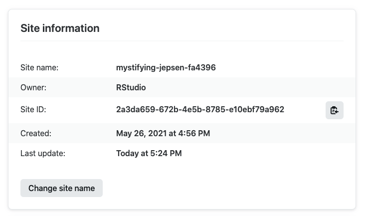 url: "https://tubular-unicorn-97bb3c.netlify.app"위 예시와 같은 _publish.yml 파일을 수동으로 만들고 사이트에 맞는 id와 url 값을 넣어도 됩니다.