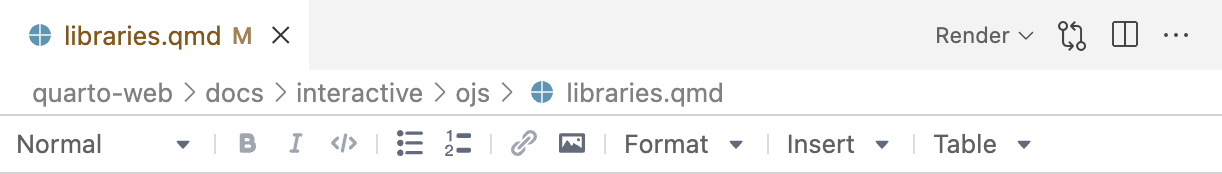 Quarto VS Code 확장에는 표, 인용, 상호 참조, 각주, div/span, 정의 목록, 속성, 원시 HTML/TeX 등을 포함해 Quarto의 모든 마크다운 문법을 지원하는 시각적 마크다운 편집기가 포함되어 있습니다: